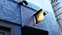 入口のドアとハンドルはアンティーク。外部入口横の看板に使った黒大理石が上質な空間を想像させる